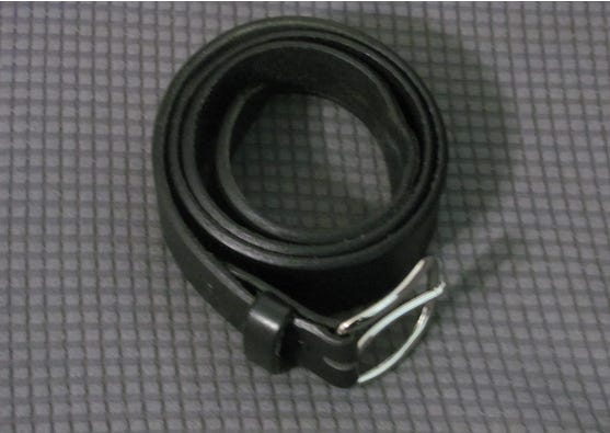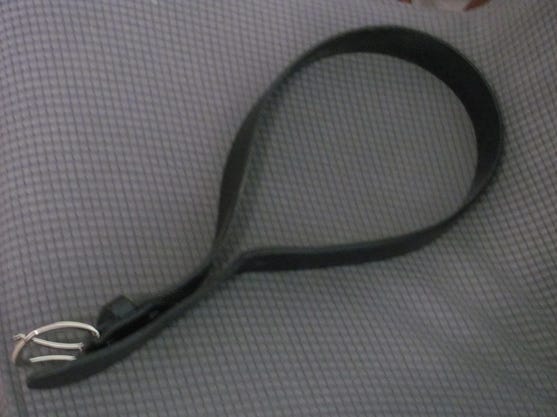 I have had the rope for quite a few years. I don’t use it that often, but it’s handy. Like the belt, it is a regular household item. The rope is soft on the outside, but weighty and thick, and it whips around at the end, easily catching the hip. It’s quiet, but not as much so as the loopy. The paddle and loopy are easy to find online, but if you’re handy you can make them at home. The paddle is my go-to instrument for a more severe spanking. The belt I have to replace every several years with a new one, and I prefer leather to the artificial material. The one pictured above is not the only one I have, as I’ve probably got four or five others in the closet for work or for dress, but that’s the one I mostly use for spanking. It’s a work belt and it does the job.